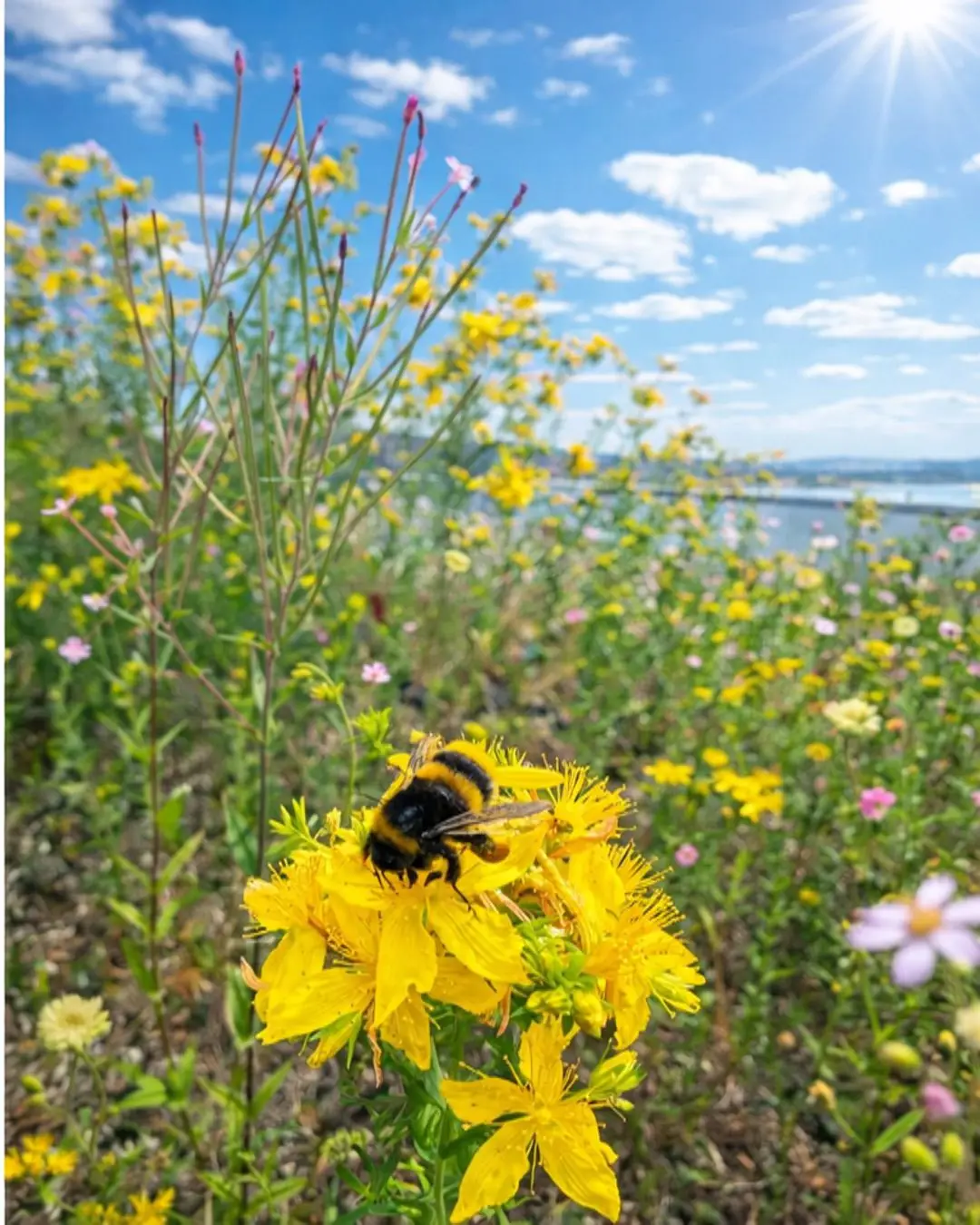 A vibrant rooftop garden thrives, showcasing the beauty of nature's work.
